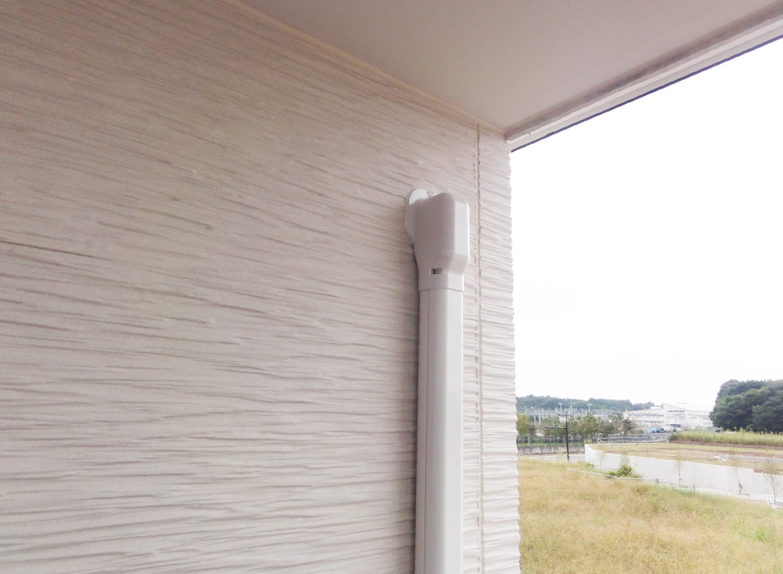 そのまま排水すると水浸しになったり水垢・コケ等付着してしまいますので、塩ビ管を使用して排水処理してあります!