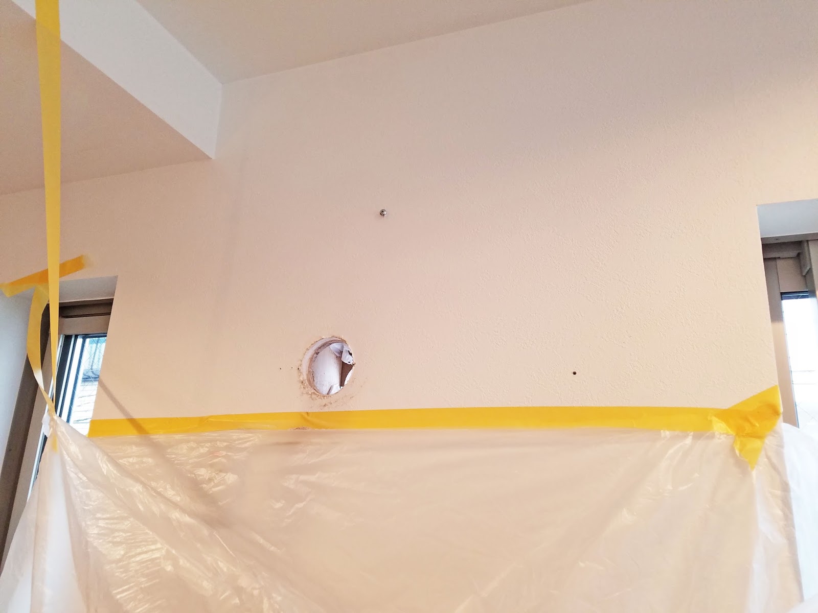 (1)エアコンを設置する前に穴をあけてしまっている。